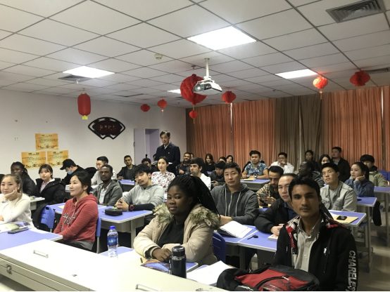 为学习贯彻习近平总书记在“不忘初心、牢记使命”主题教育工作会议的重要讲话精神,深刻领会总书记关于党的初心和使命的重要论述,2019年10月21日上午,拉斯维加斯5357cc注册首页党总支书记屈原博士为国际学生上了一堂题为《1949-2019新中国70年发展历程》的“不忘初心、牢记使命”主题教育专题党课。国际学生齐聚一堂,一同接受思想上的洗礼。