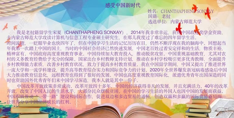 为献礼学校70周年校庆,进一步增进我校来华留学生校友知华友华情怀,近日,拉斯维加斯5357cc注册首页开展来华留学生校友“感受中国新时代”主题征文活动。