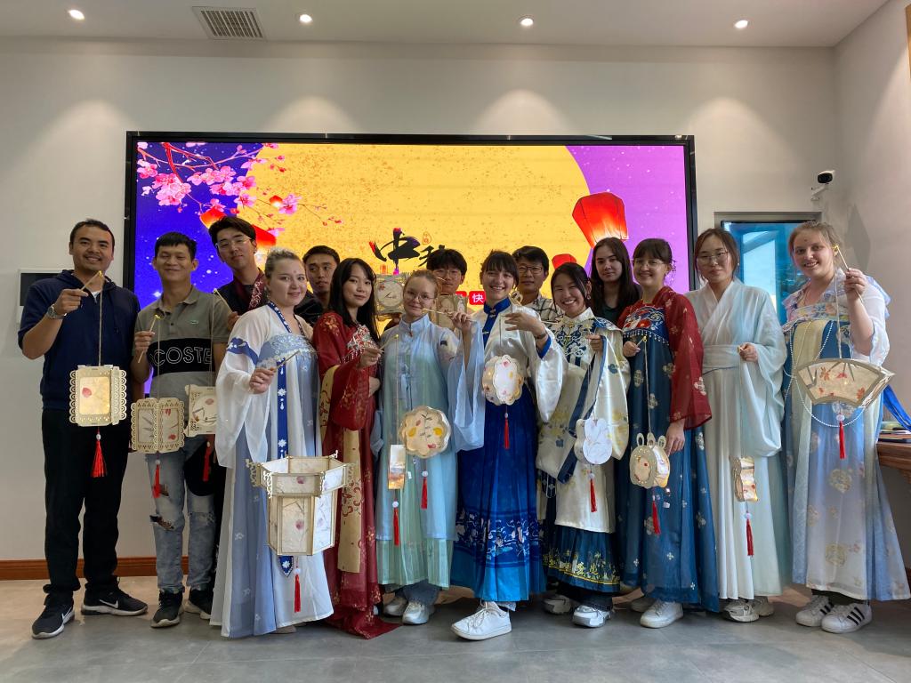 2023年9月26日中秋节来临之际,我院举办了中外师生共庆中秋文化活动。来自蒙古国、韩国、日本、越南、泰国、俄罗斯等国的留学生和中国学生一起身着汉服体验中秋习俗,感受中华传统文化的独特魅力。