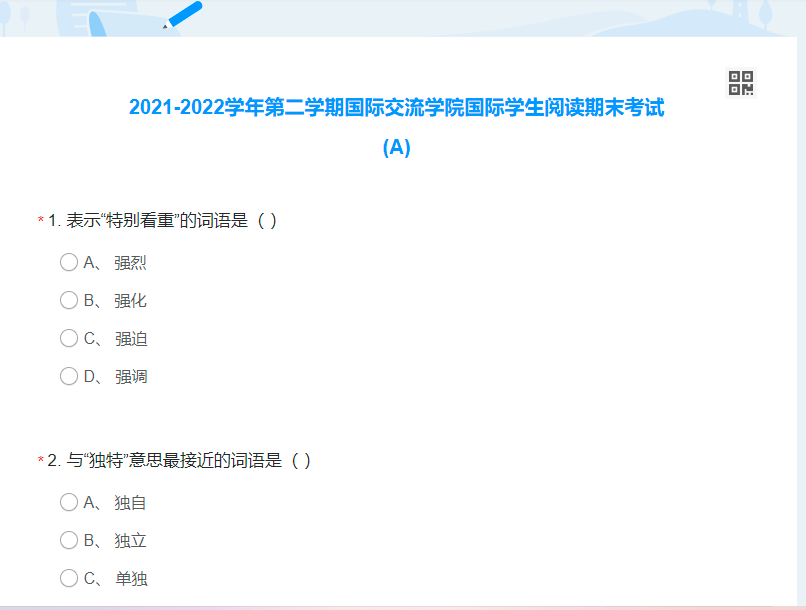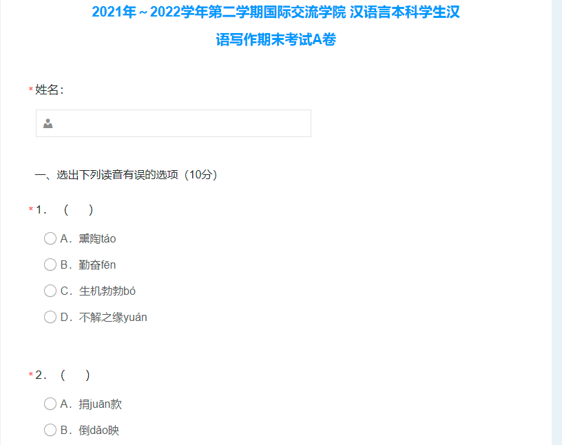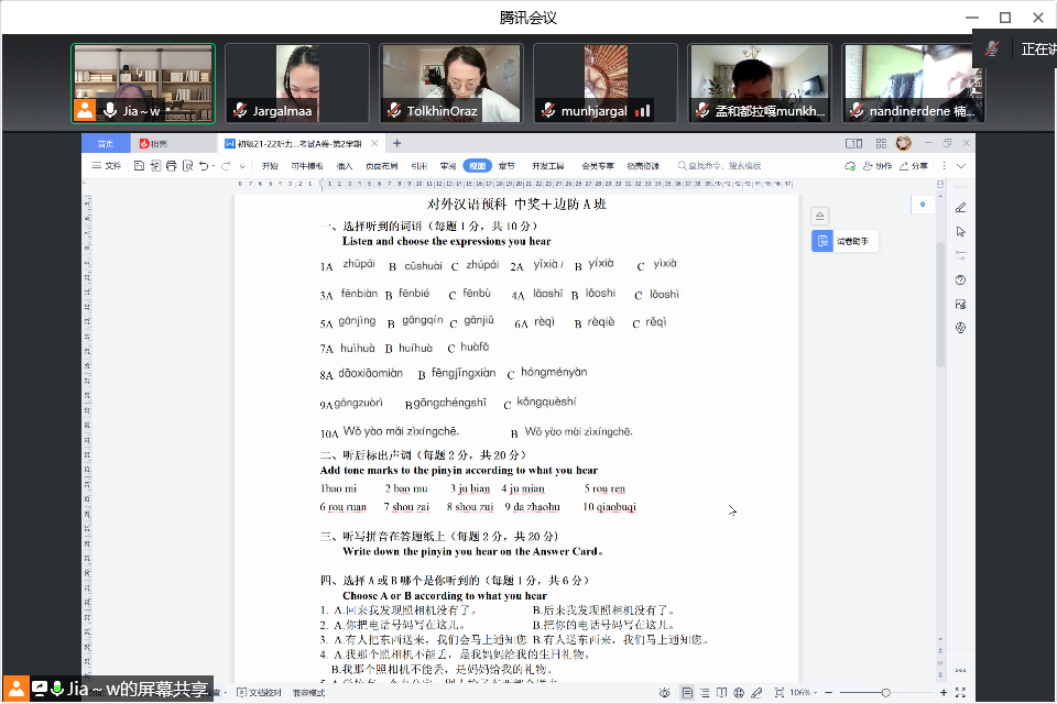 6月21日,我院本学期期末考试进入第二天。当日我院共开设7门课程的考试,均顺利开考。考试平台包括腾讯会议、问卷星、微信视频会议等。考试形式包括视频连线、在线提交、电子试卷等。总体时间安排合理,教师监考方式整体有效,链接公布及时,巡考全覆盖。个别学生在线考试时未打开视频。