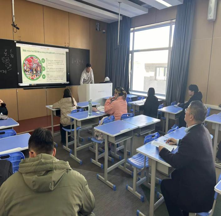 2023年3月19日下午,在副院长张磊的带领下,我院督导组成员ISEC教研室主任祝博、朝鲜(韩国)语教研室主任马文黎等深入课堂共同开展了督导听课活动。本次听课旨在进一步提升教学质量,促进我院教师教学水平的提升。