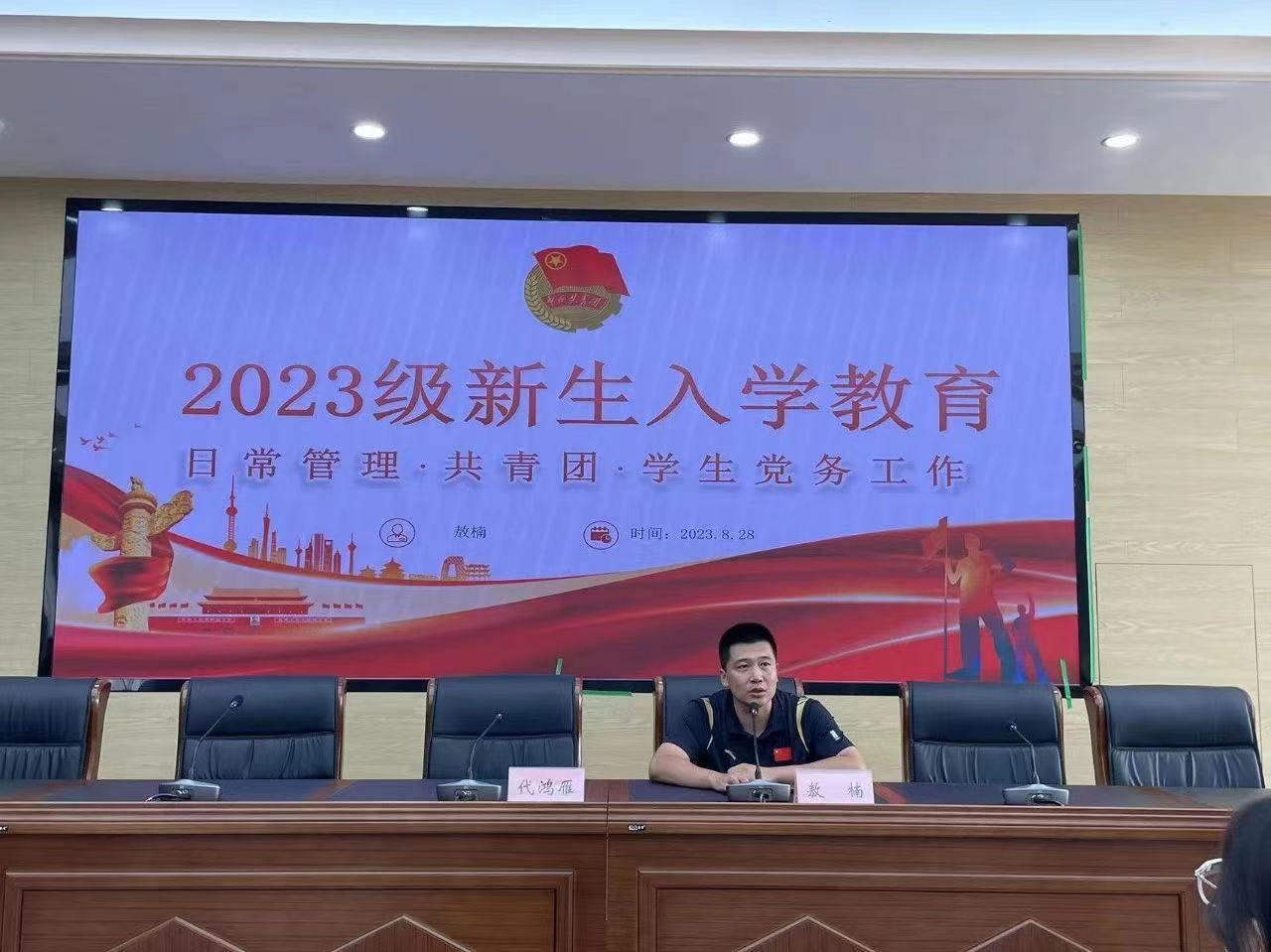 拉斯维加斯5357cc注册首页团总支书记敖楠介绍学生党务工作、学院共青团工作、学生日常管理、奖助贷减补以及军训要求