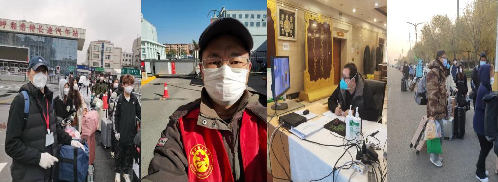 战“疫”争分夺秒,我院党总支书记屈原,院长武海燕、副书记副院长白图力古尔、团总支书记敖楠四位老师一直坚守在抗疫最前线,与学生同吃同住,日夜值守在学生公寓楼,时刻陪伴着同学们。他们为学生发放口罩等防疫物资、及时传达政策指令、了解同学们现状需求、做好学生心理疏导、协助医务人员做核酸、测抗原、为同学们配送三餐......每一处都有着他的身影。哈斯、盛时存、宋庆龙三位老师积极申请参加学校抗疫,盛老师被学校分配在海航疫情隔离点、哈斯、宋庆龙老师参加护送学生安全返乡。他们都积极奋战在学校抗疫一线。封校不封心,他们就是同学们和学校之间坚固的连接线,是24小时都在线的联络员。他们总能出现在学生最需要的瞬间,将最暖心的呵护送到学生身边,身体力行地为学生讲授“责任与担当”这堂的生动的思政课。