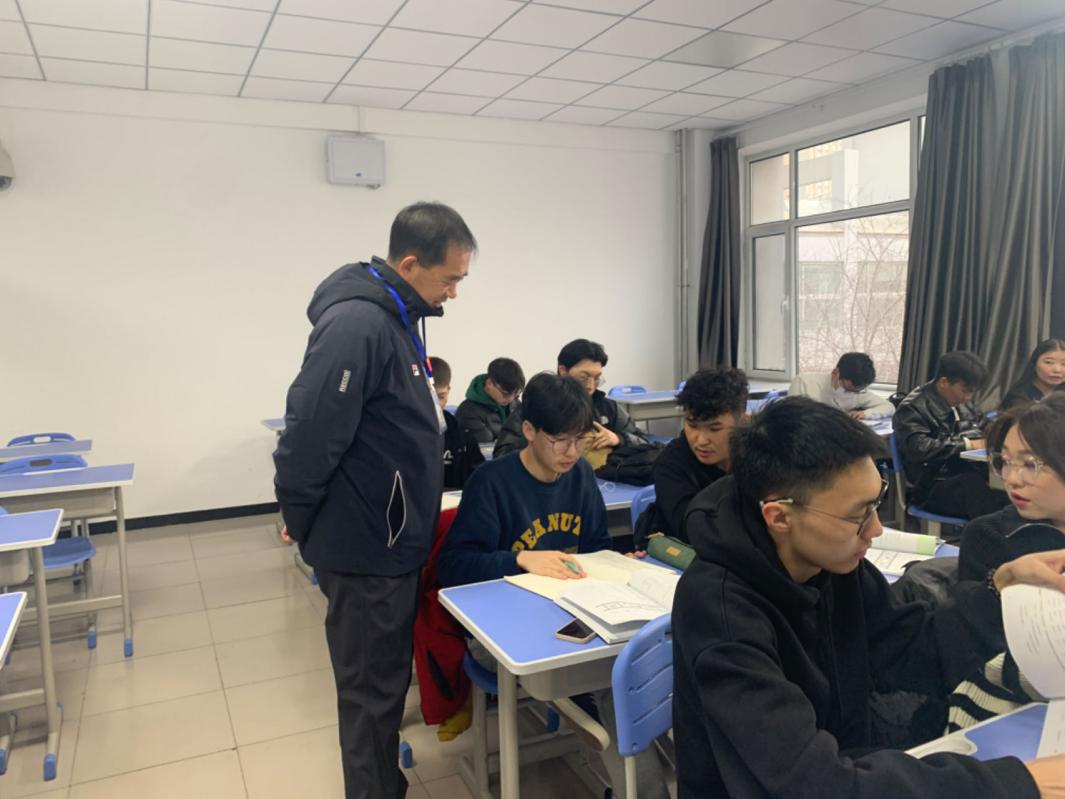 在督导查课的过程中,我院督导组恰逢学校教务处处长王利一行进行学期初教学检查。双方就我院学生返校情况、学生上课情况等进行了交流。王利处长对我院开学首日的教学工作给予了肯定,并希望我院能够继续保持良好的教学状态,为学生提供更加优质的学习环境。